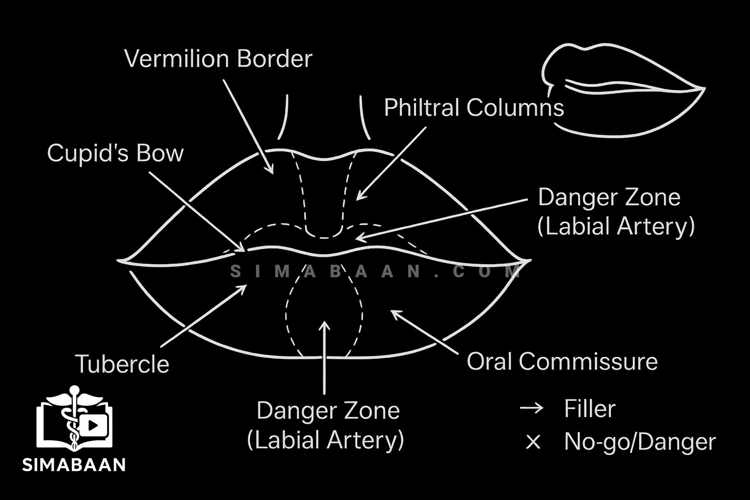This module covers detailed anatomy of the lips and surrounding areas, including: